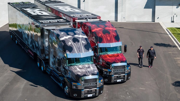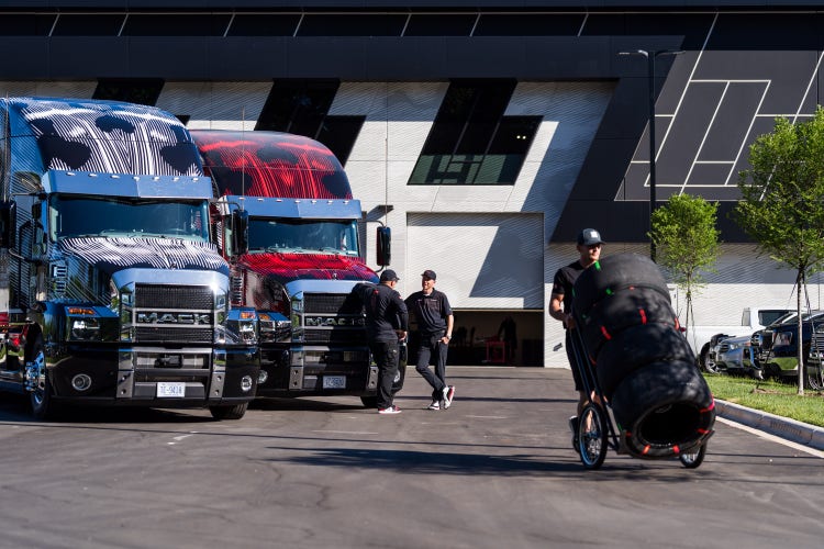 23XI Racing haulers Chris Miko and Tony Manns say one of the perks of the prestigious hauling job includes driving the coolest trucks. Miko hauls for No. 45 Tyler Reddick and Manns for No. 23 Bubba Wallace, and both had never driven a Mack before the Anthems.