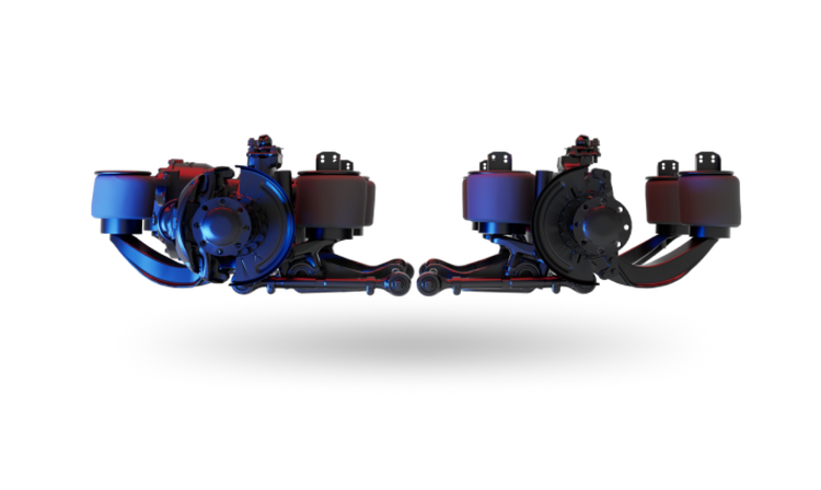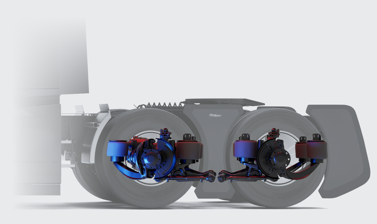 The Mack MaxRide™ rear air suspension delivers premium comfort and stability through its advanced 4 or 8-air spring design, available only on the new Mack truck platform. This non-torque reactive suspension prevents frame lift during acceleration, providing higher GCW limits and exceptional ride quality for on-highway and heavy-duty applications.