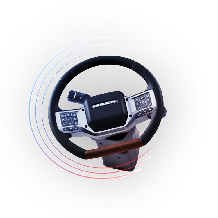 Mack’s electronic driver-assist technology reduces driver effort by up to 85% to protect drivers from wear-related injuries.