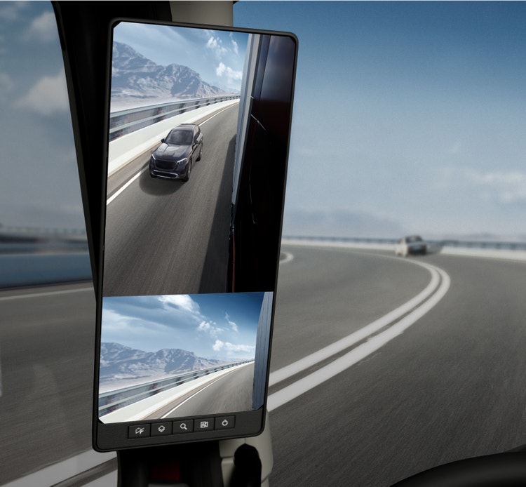 The optional DMS combines dual camera wings and interior high-resolution digital displays to provide clear, real-time views that replicate traditional mirrors for enhanced visibility and safety.