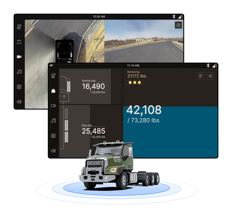 Utilizing multiple cameras, this advanced feature offers drivers 360-degree visibility and the ability to monitor payload with Weight Management. This provides the highest level of situational awareness and load management.