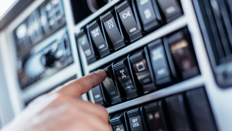 Ergonomic-inspired dash wraps around drivers to put everything in reach. Oversized, back lit and laser-etched, switches are readable for life.